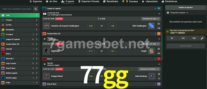 O 77gg oferece uma grande seleção de opções de apostas em e-sports com probabilidades competitivas